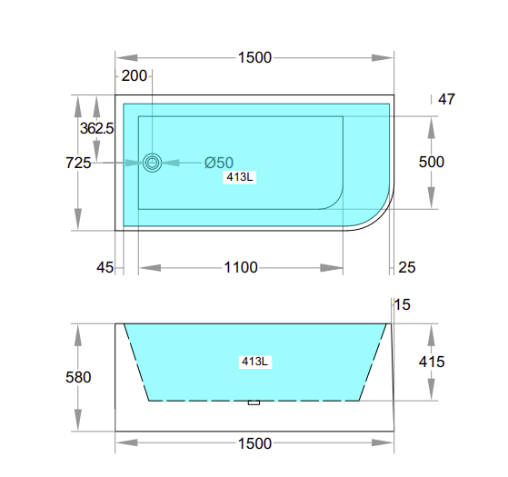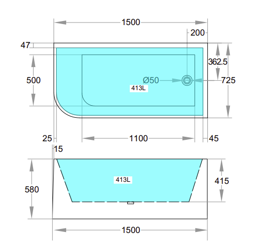 Size: 1500*725*580mm Corner BTW Bathtub CBT1500R(Right Corner) CBT1500L(Left Corner) NON OVERFLOW