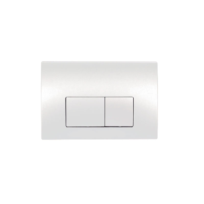— Dual flush with round buttons — Front actuation — Moulded plastic, polished white frame & button with chrome ring