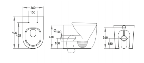 lack and White Colors 4.5/3 Liters Dual Flush Size: 595*360*410mm Trap-100: 70-115mm (Supplied) UF Slim Seat SC805 (Supplied) Optional Trap-60: 60-90mm JT43: 155mm UF Standard Seat SC804