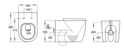 Easy Height 4.5/3 Liters Dual Flush Size: 585*360*455mm Trap-100: 100-130mm (Supplied) UF Standard Seat SC803 (Supplied) Optional Trap-60: 60-80mm JT43: 150-165mm