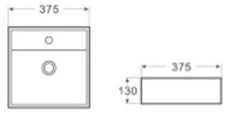 Size: 380*380*120mm Wall Hung / Above Counter Gloss White Fine Ceramic Waste: 32mm Overflow Pre cut stone top YES