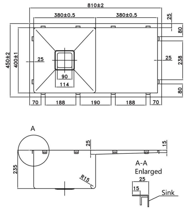 Universal Installation-Top or Undermount Undermount 1.2mm S.S 304 250mm extra deep bowl Bowl Size: 380 400 235mm